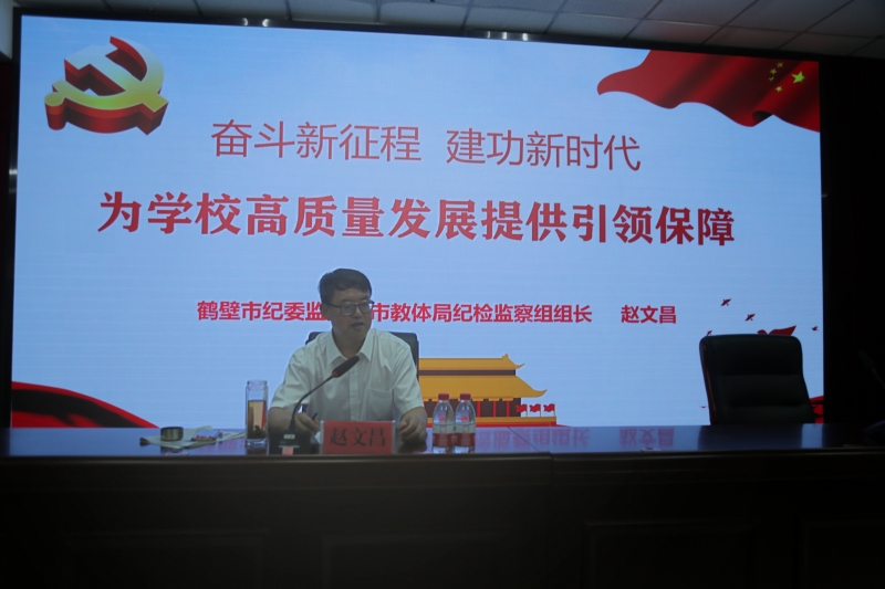 赵文昌以“奋斗新征程,建功新时代,为学校高质量发展提供引领保障”为主题,从讲政治、讲站位;讲纪律、讲作风;讲格局、讲情怀等三个方面,结合教体系统实际,以案说纪,以案释法,并就党员干部六大纪律进行了全面深入的阐述。赵文昌指出,老师要守纪律,讲规矩,提形象,做清正廉洁的好教师,在政治纪律方面,要坚定理想信念,要坚决做到“两个维护”,要始终对党绝对忠诚;在组织纪律方面,要坚持民主集中制原则,要如实报告个人有关事项;在廉洁纪律方面要“谨小慎微”,要“善始善终”;在群众纪律方面,要树牢群众观点,要树立正确的政绩观,要坚决纠正“慵懒散漫”等问题;在工作纪律方面,干事创业要严守纪律底线,落实工作要坚持实事求是;在生活纪律方面,要培养健康的生活情绪,要不断净化朋友圈。