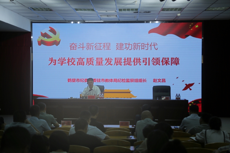 为进一步贯彻落实全面从严治党主体责任,有效推进党风廉政建设,9月6日,鹤壁能源化工职业学院邀请市教体局党组成员、市纪委监委驻市教育体育局纪检监察组组长赵文昌为全体教职工作了一场党风廉政建设专题报告会。会议由学院党委书记杨会明同志主持,学校全体领导班子成员、全体教职工参加了会议。