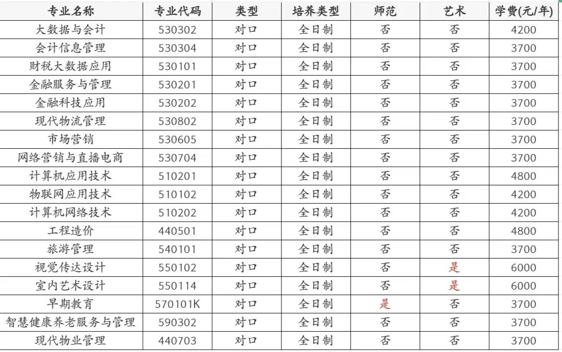 附件:2026年对口招生专业一览表:
